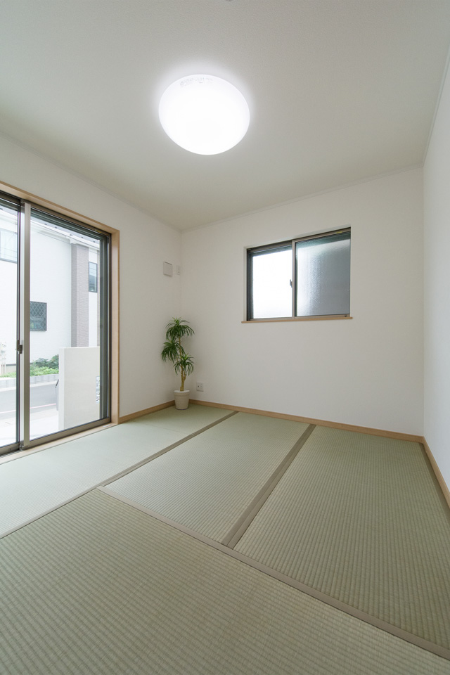 畳のさわやかなグリーンが空間を彩る1階畳敷きスペース。