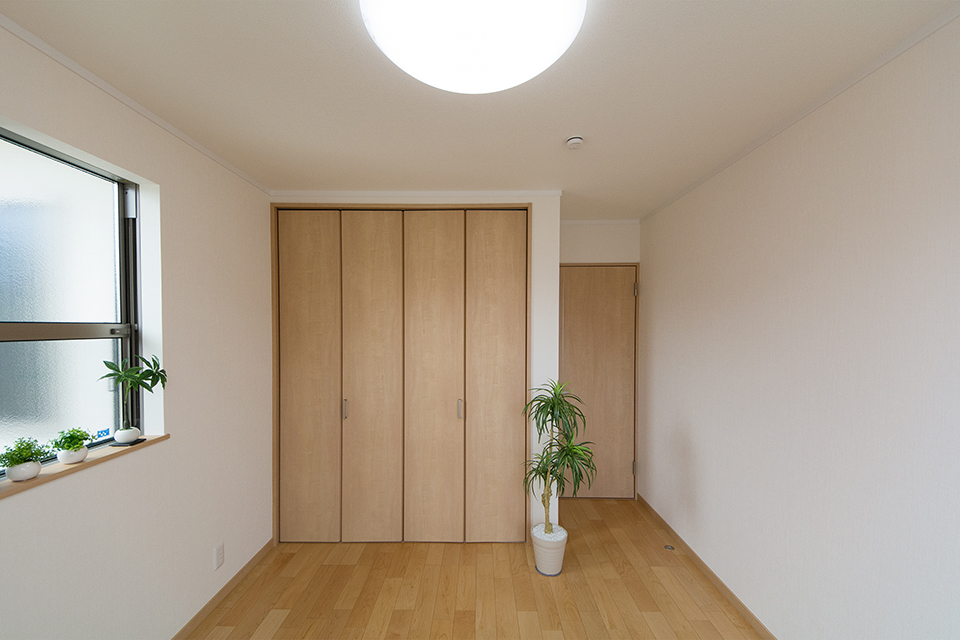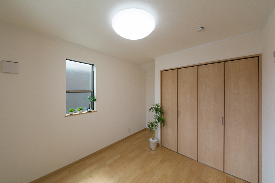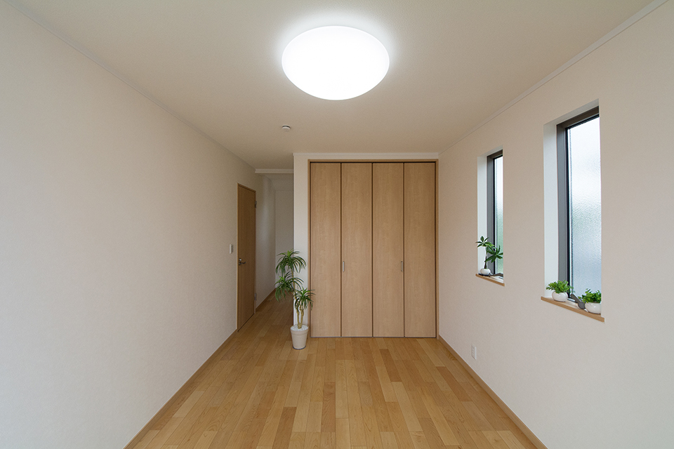 2階洋室。ハードメープルのフローリングが優しくナチュラルな空間を演出します。