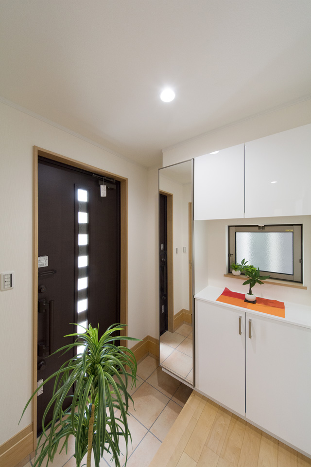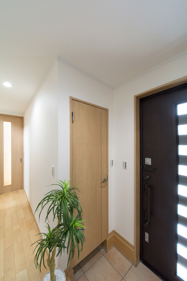 玄関ドアのガラス部分から差し込む光が、明るく開放的ある空間を演出します。