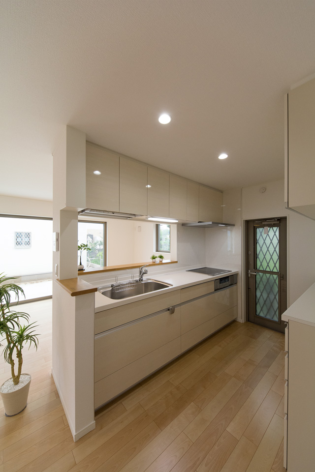 シンプルモダン埼玉県狭山市30坪以上玄関土間、リビングイン階段、ハイスタッド、アイランド/ペニンシュラキッチン