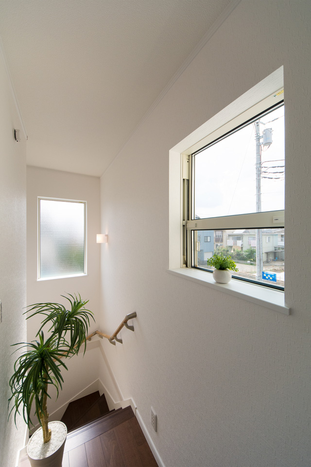 玄関ドアのガラス部分から差し込む光が、明るく開放的ある空間を演出します。