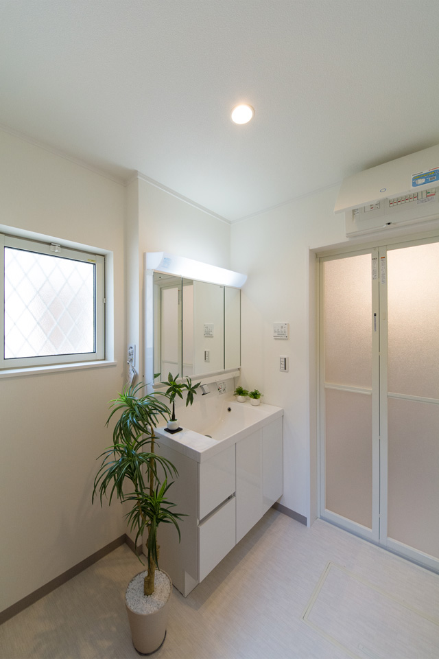 白を基調とした清潔感のあるサニタリールーム。