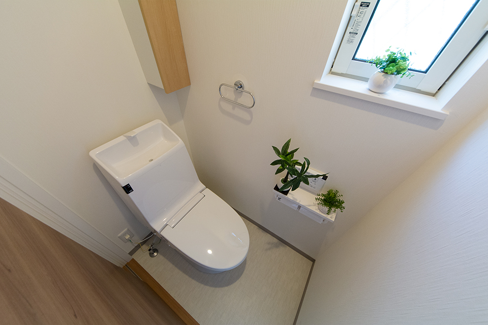 白を基調とした清潔感のある1階トイレ。