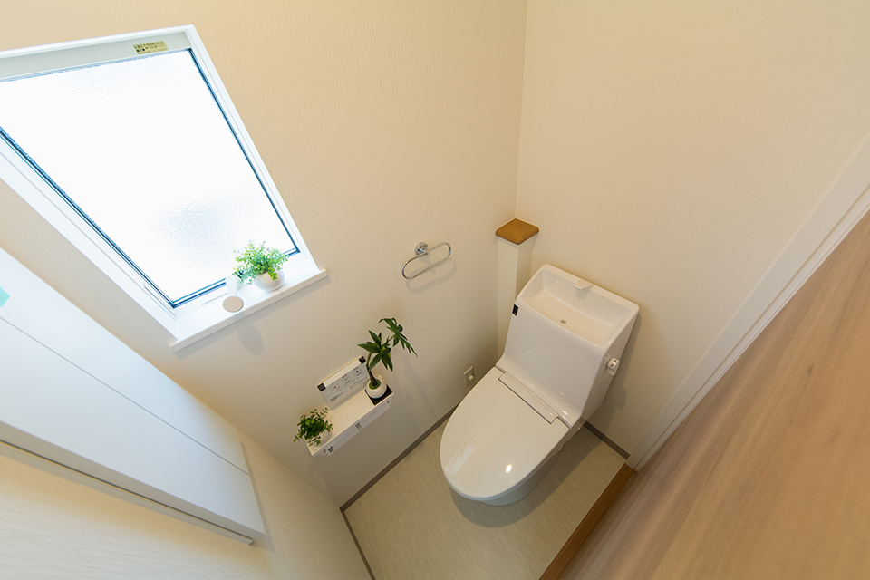 白を基調とした清潔感のある2階トイレ。