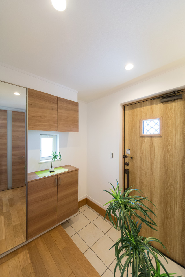 玄関ドアのガラス部分から差し込む光が、明るく開放的ある空間を演出します。