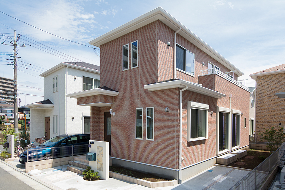 重厚さの中にもおだやかさを感じる、表情豊かなオレンジのブリック調サイディング。 ナチュラルであたたかみのあるデザインに仕上がりました。