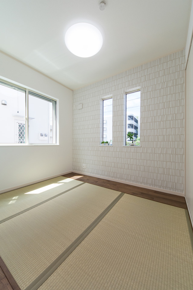 畳のさわやかなグリーンが空間を彩る1階畳敷きスペース。