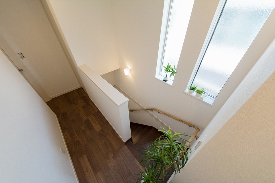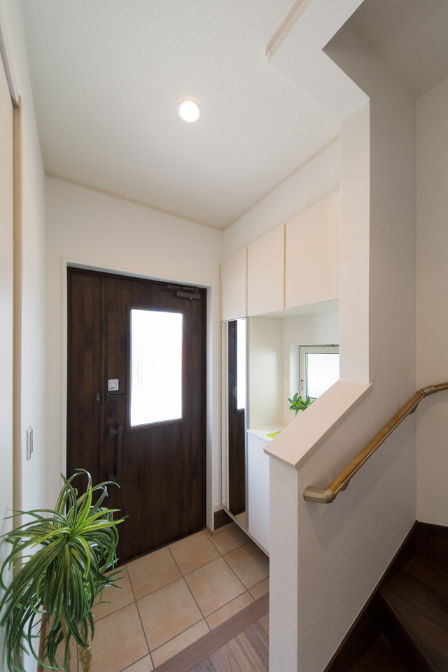 玄関ドアのガラス部分から差し込む光が、明るく開放的ある空間を演出します。