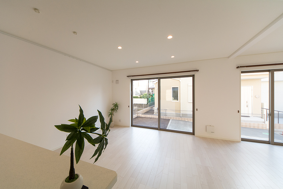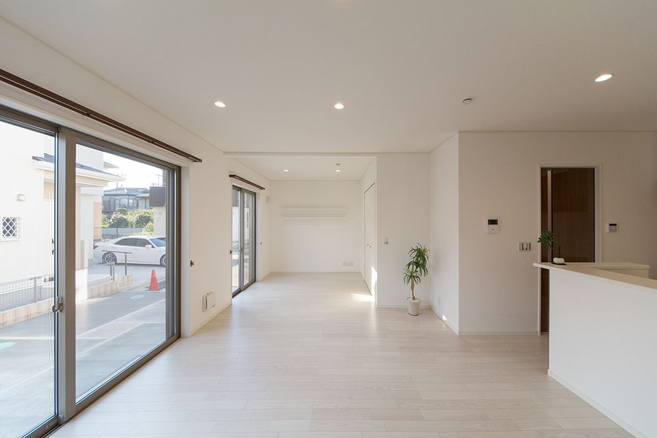 一面に配した大きな窓が、明るく開放感ある室内を演出。
