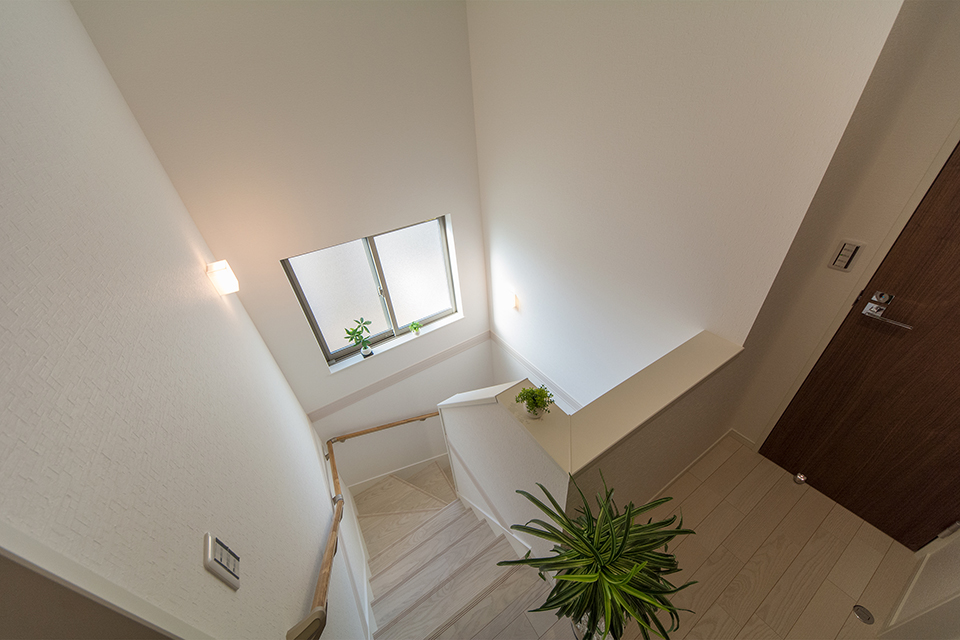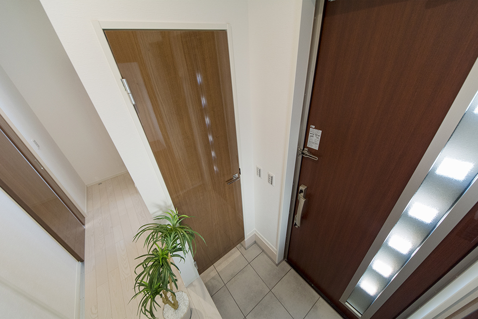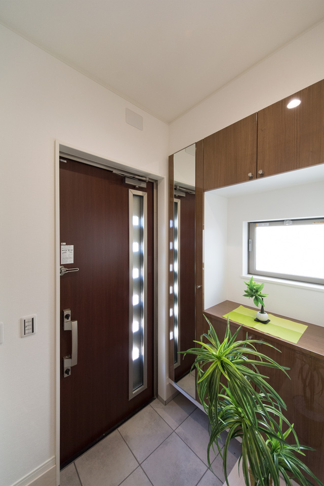 玄関ドアのガラス部分から差し込む光が、明るく開放的ある空間を演出します。