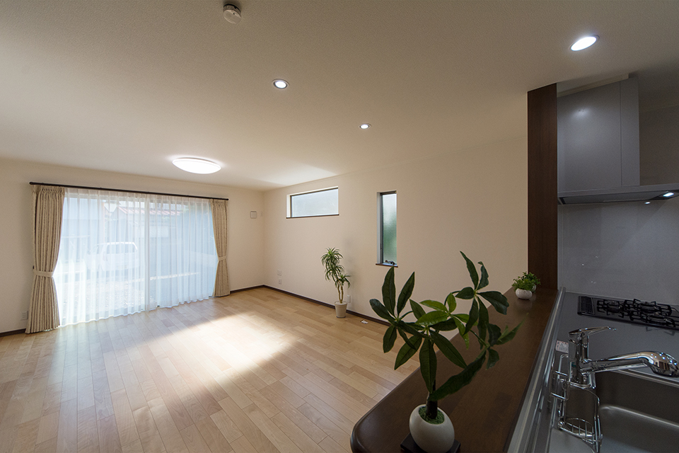 大きな窓から光が降り注ぎ、明るく開放的な空間に。