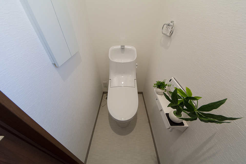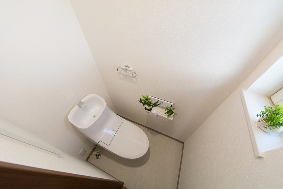 白を基調とした清潔感のある1階トイレ。