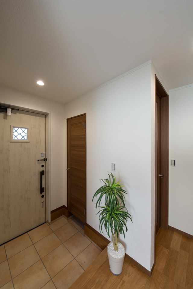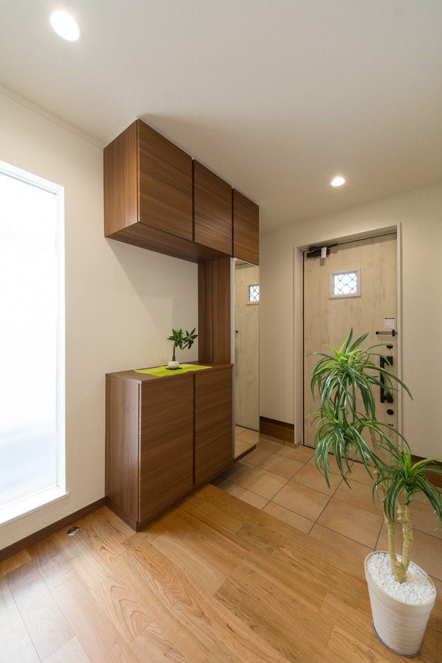 玄関ドアのガラス部分から差し込む光が、明るく開放的ある空間を演出します。