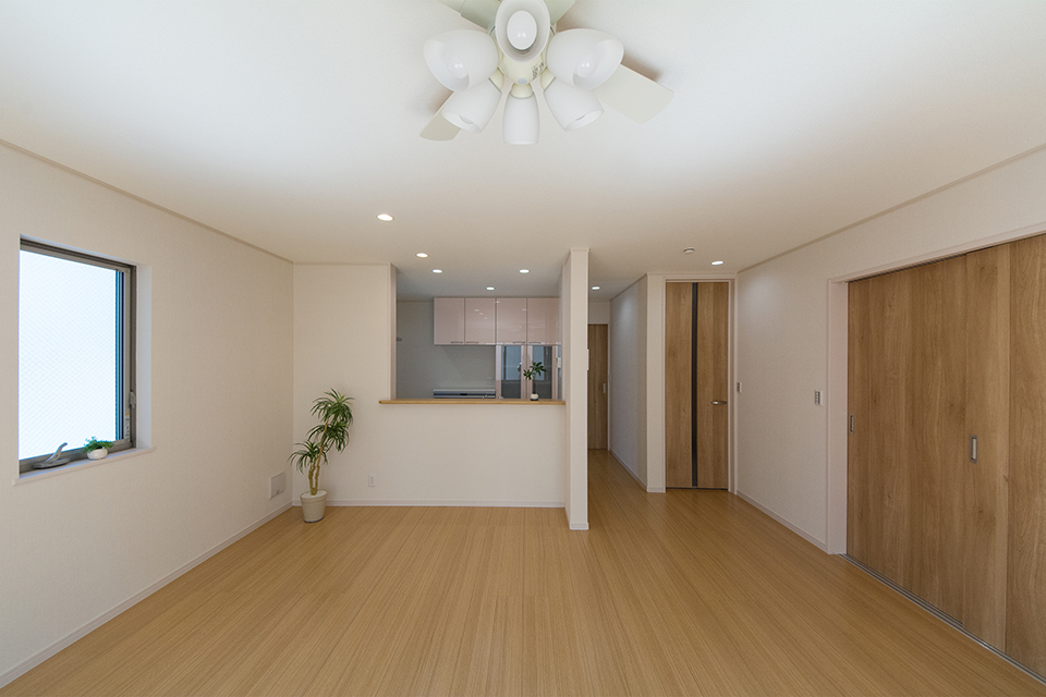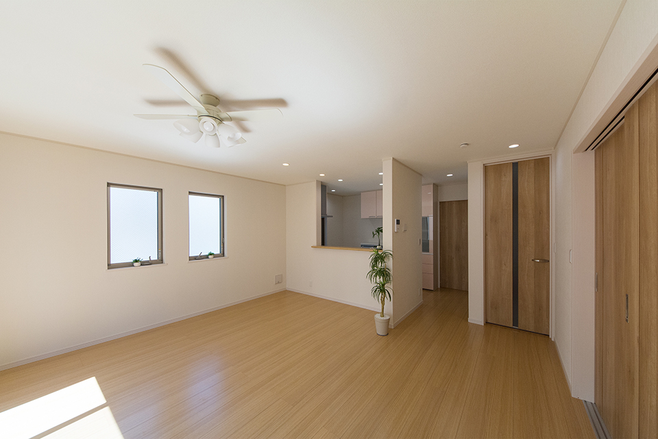 リビングにはインテリアファンを設置。空気の流れで快適な居住空間を可能に。