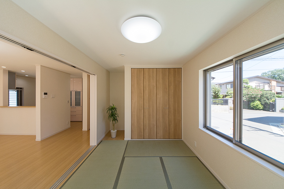 畳のさわやかなグリーンが空間を彩る1階畳敷きスペース。