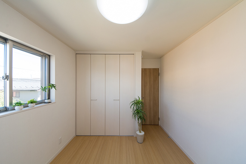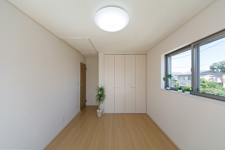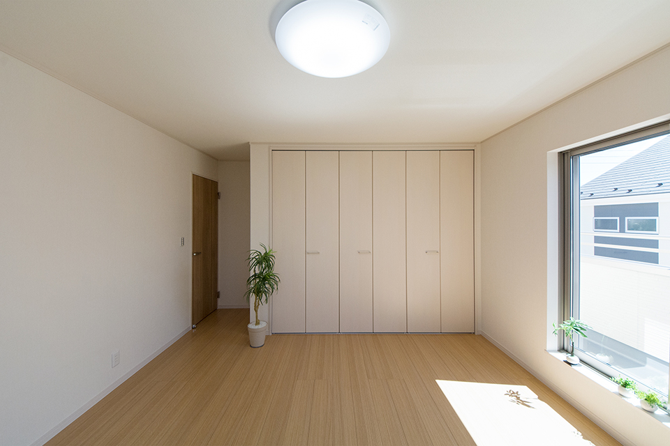 2階洋室。シンシアオークのフローリングとホワイトの建具が優しくナチュラルな空間を演出。