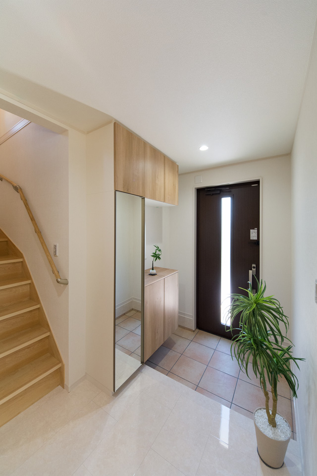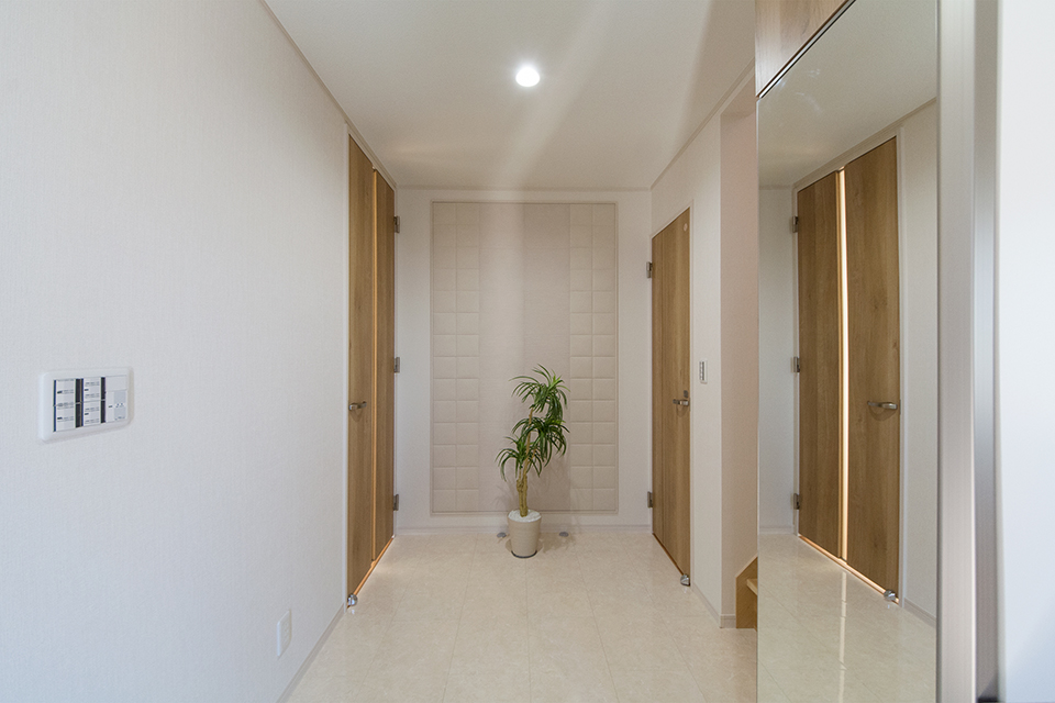 玄関ドアを開けると、エコカラットをあしらった装飾壁が出迎えてくれます。