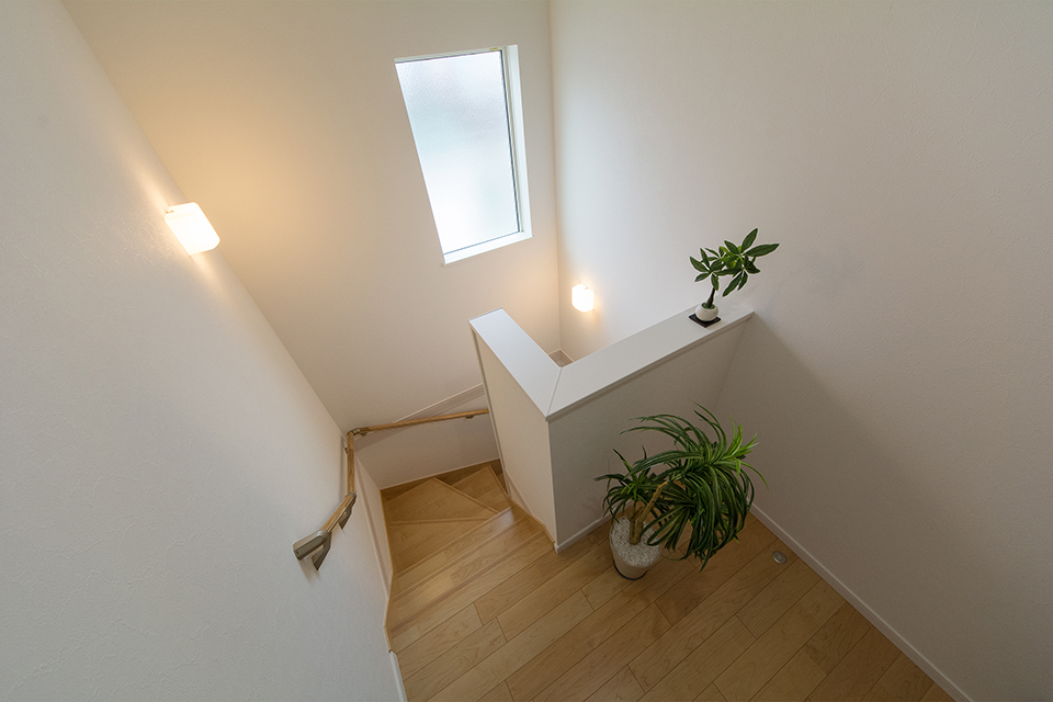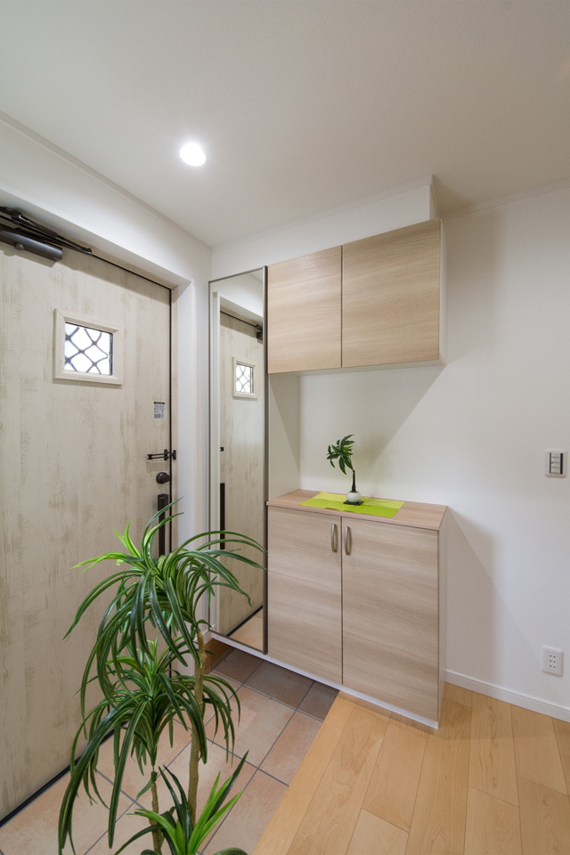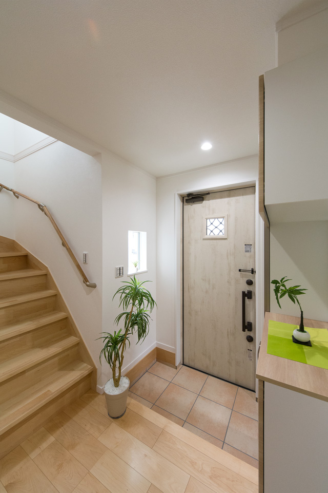 玄関ドアのガラス部分から差し込む光が、明るく開放的ある空間を演出します。
