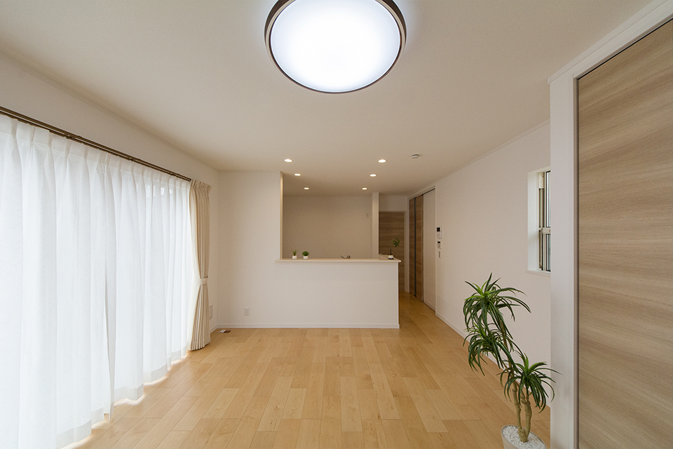 オーク調の建具とフローリングがナチュラルな雰囲気を演出。