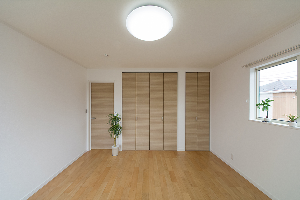 2階洋室。ハードメープルのフローリングが優しくナチュラルな空間を演出します。