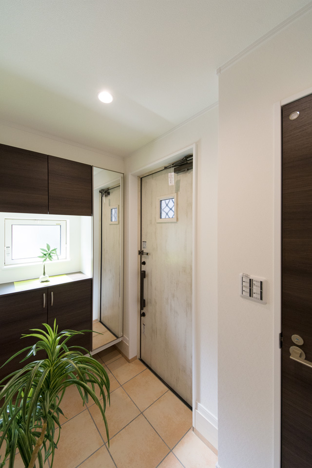 ダークブラウンの木目調サイディングと、凹凸感ある自然石をランダムに積み上げたようなサイディングで張り分けした外観。 温かみのあるナチュラル&モダンなデザインに仕上がりました。