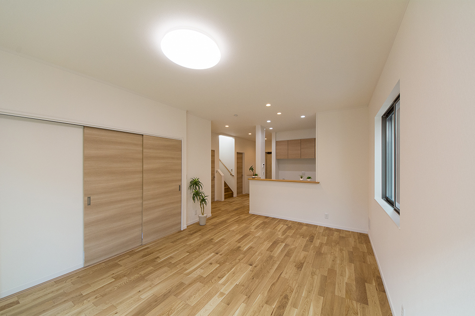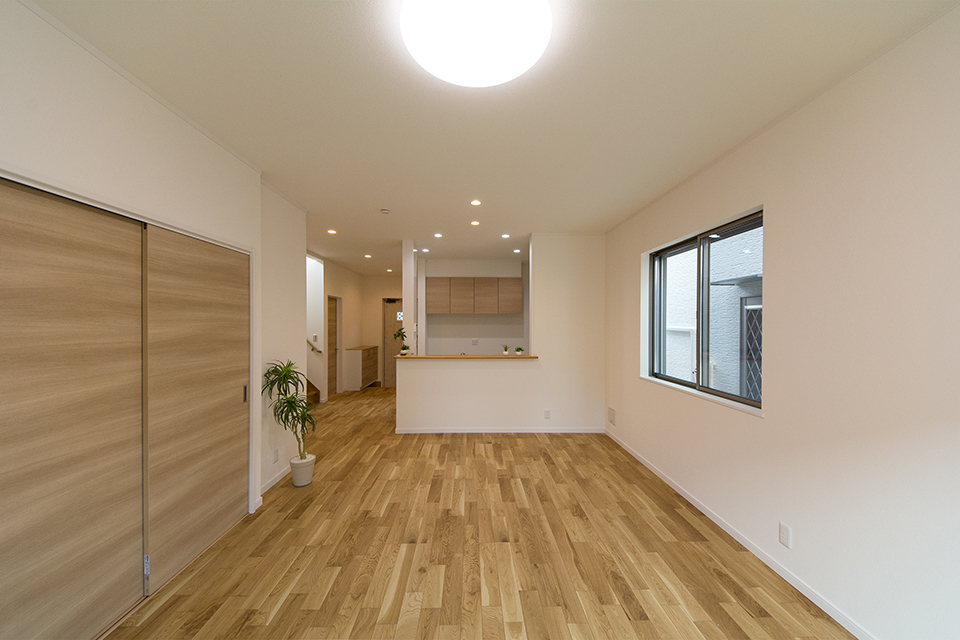 素朴なラスティック塗装を施したナラ樫のフローリングが、ナチュラルな雰囲気を演出。