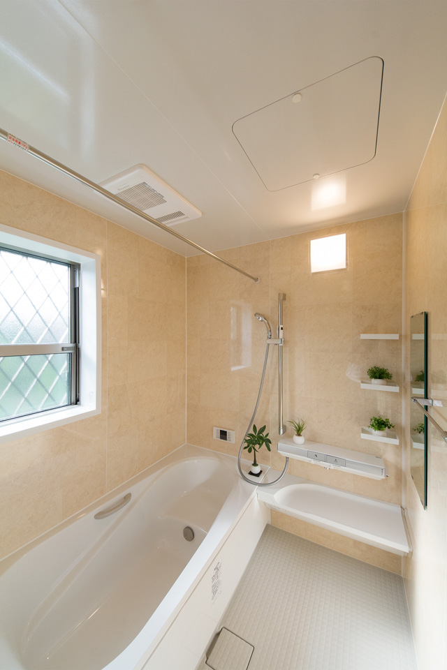 ナチュラルな配色で心地よい穏やかな空間のバスルーム。