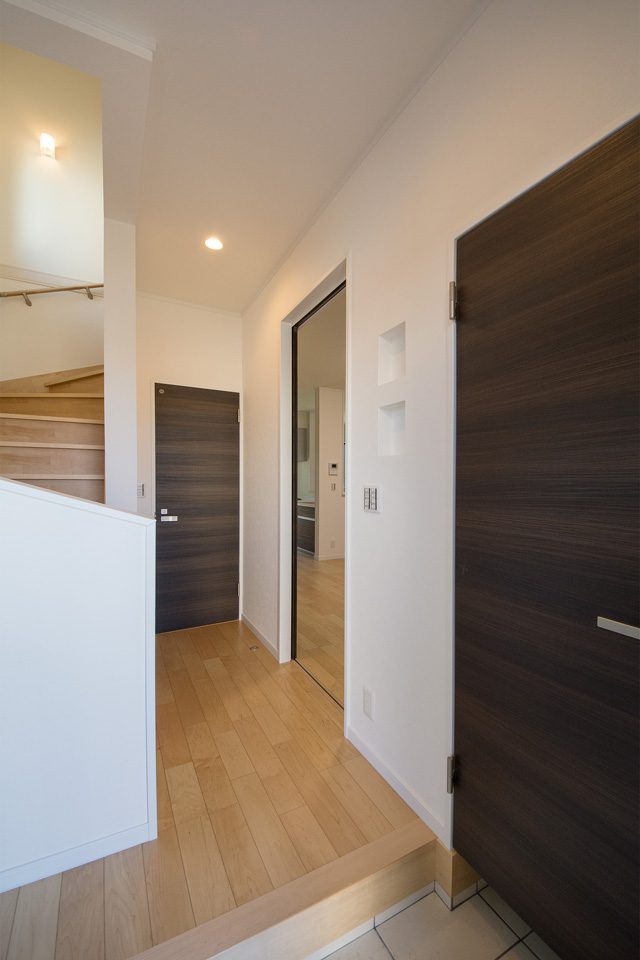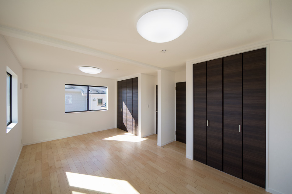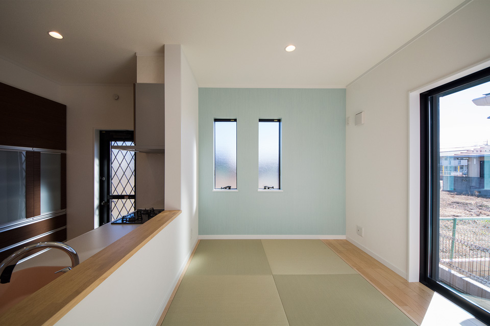 白と黒をベースとしたシンプルモダンの外観に、オーク色を配し温かみのある表情をプラス。 小上がりになった畳敷きダイニングは、ゆったり家族団らんを楽しむスペースとして大活躍すること間違いなし。 他充実の生活設備もJ-eco ならではの嬉しい設計です。