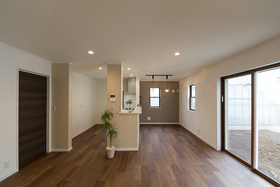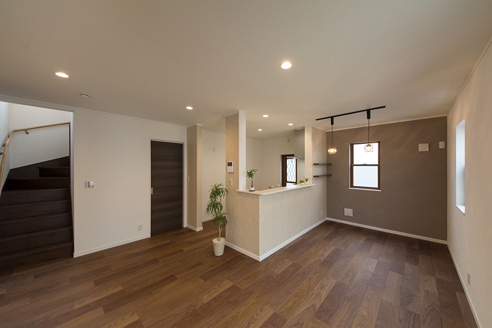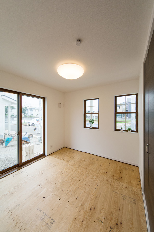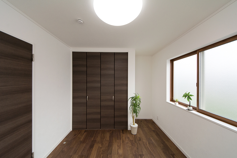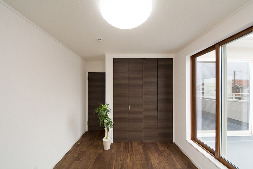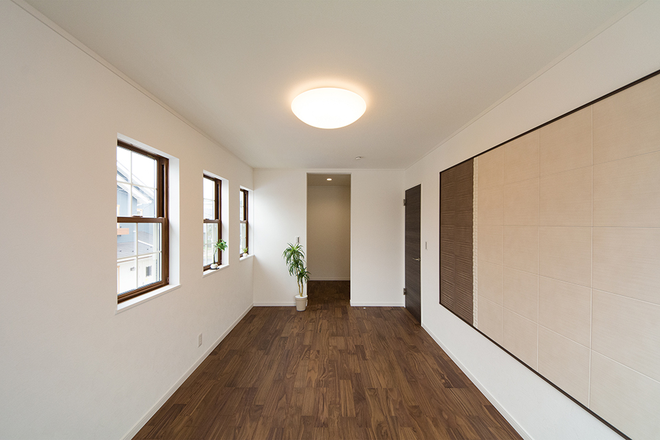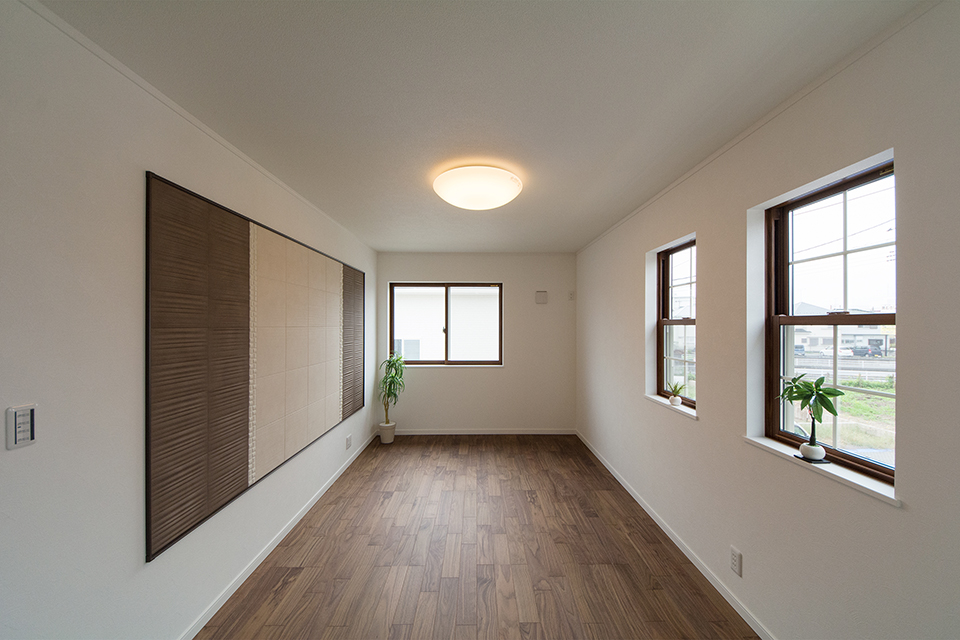 2階洋室。ウォルナットのフローリングがナチュラルな空間を演出。