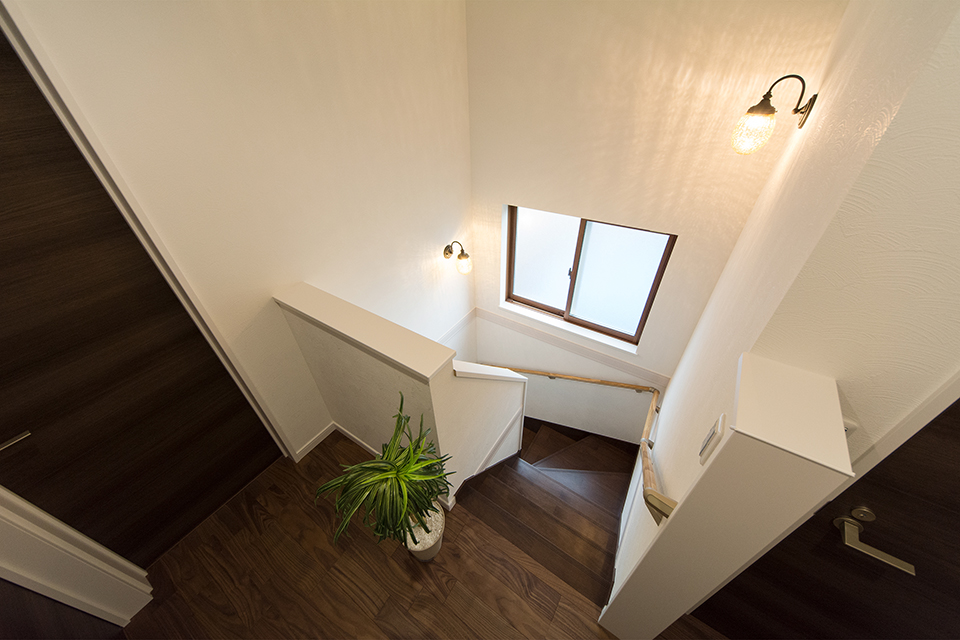 家族の笑顔とコミュニケーションを育むリビング階段を採用。