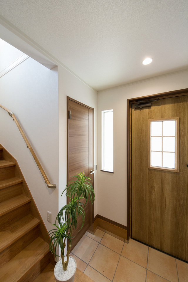 モダンなライトグレーのボーダー柄サイディングをベースに、白の木目調サイディングでナチュラルな雰囲気をプラス。 街並みに溶け込んだナチュラル&モダンなデザインに仕上がりました。