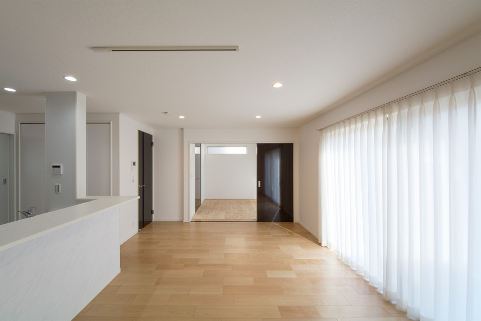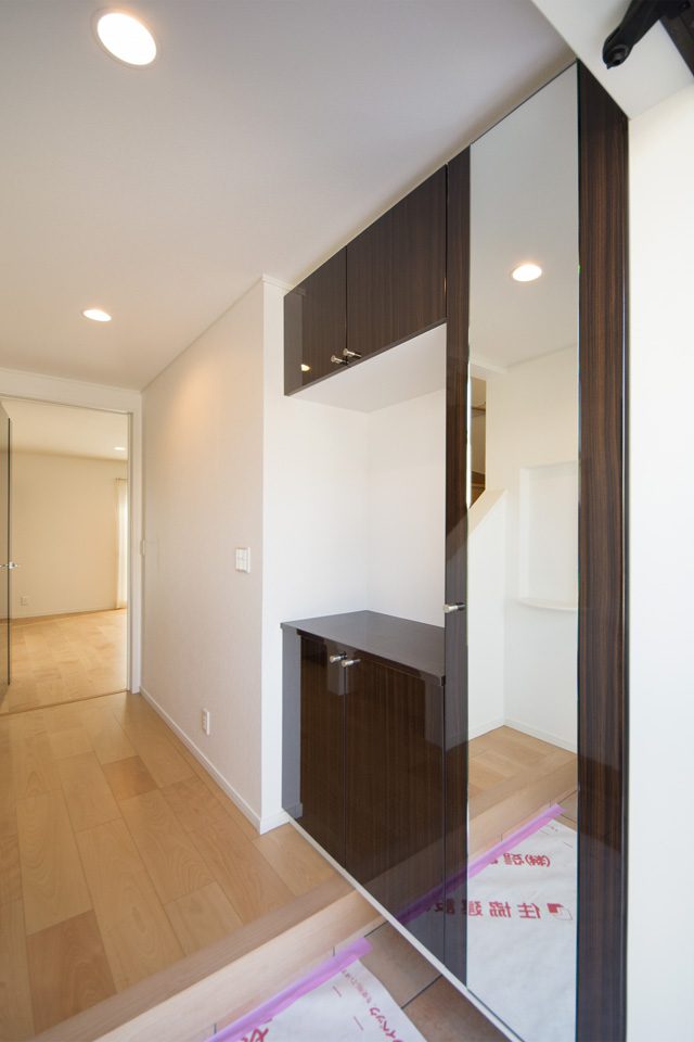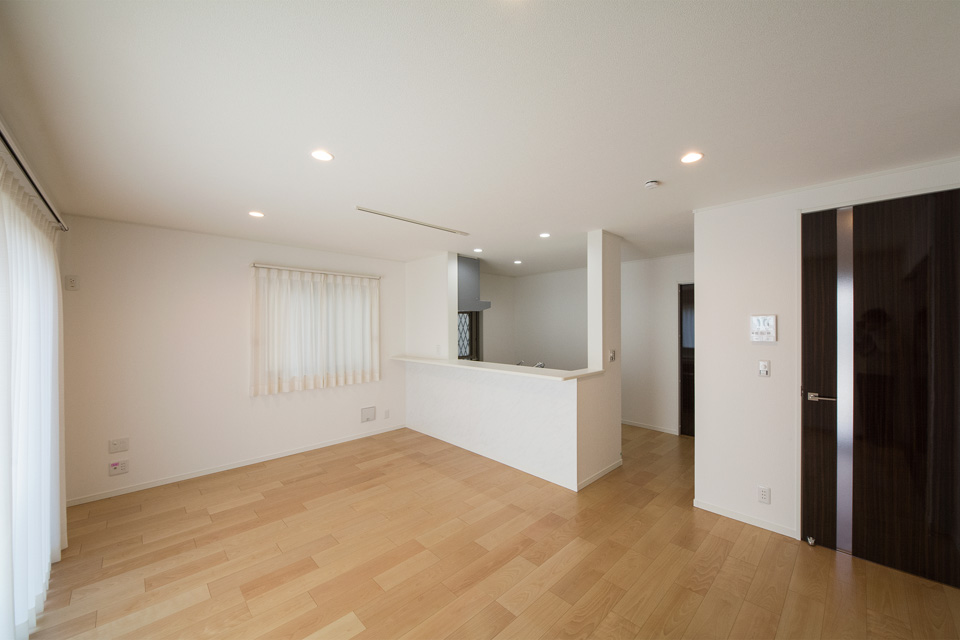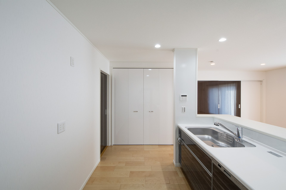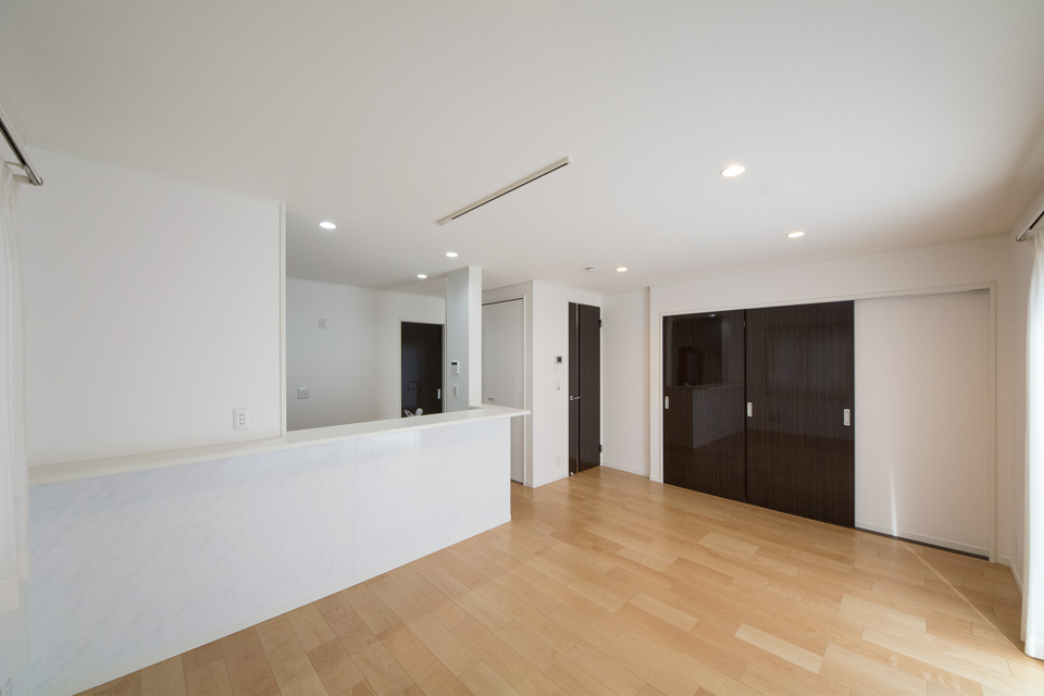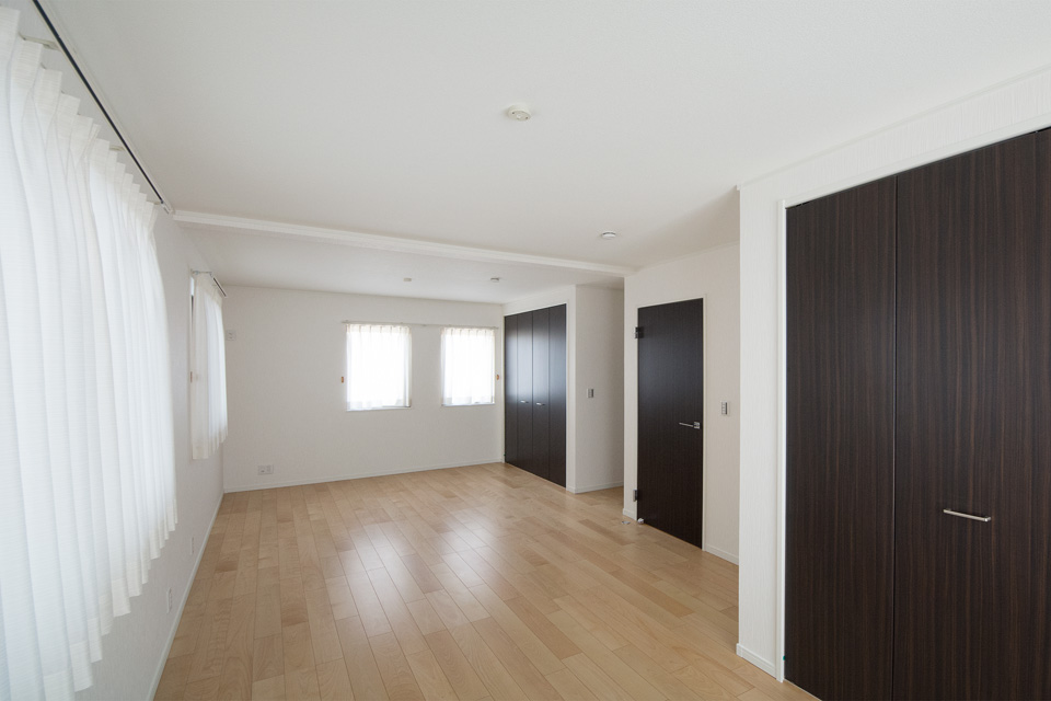 穏やかで繊細な色のフローリングとダークな色合いの建具が美しいコントラストを奏で、スタイリッシュさと木の温かみを感じさせる清潔感ある室内に。 パントリーやシューズインクローゼット、ウォークインクローゼットを備えた収納豊富な邸宅です。