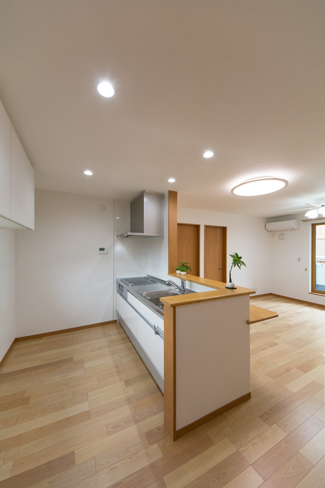 2階LDK―穏やかな木目と緻密な木肌が印象的なバーチのフローリング。