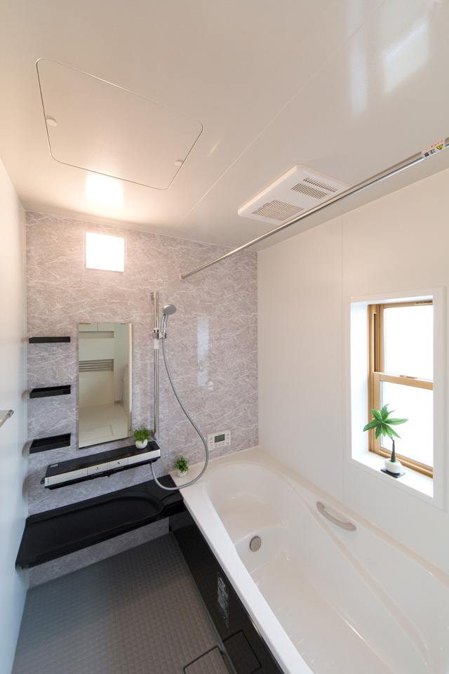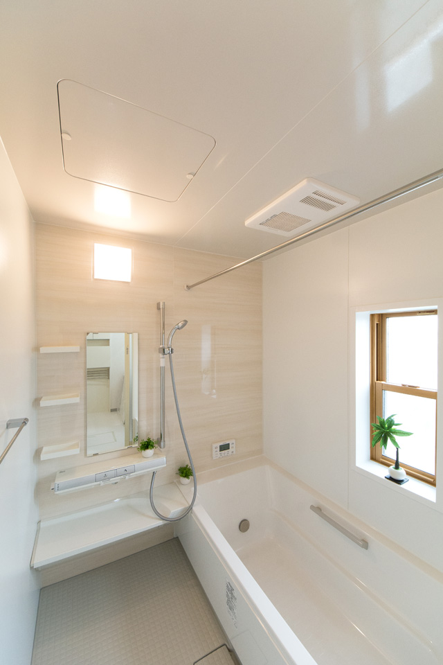 ナチュラルな配色で心地よい穏やかな空間の1階バスルーム。