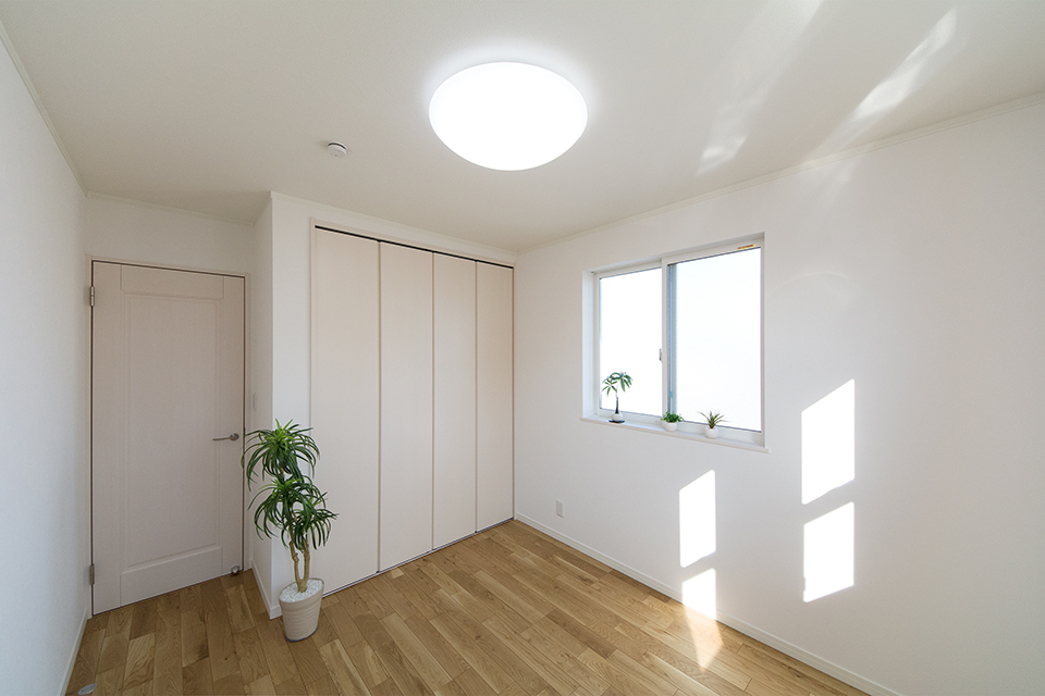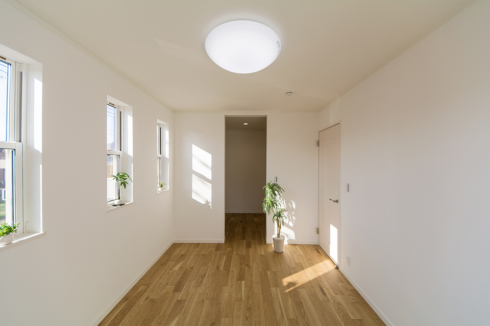 2階洋室。ナラ樫のフローリングがナチュラルな空間を演出。