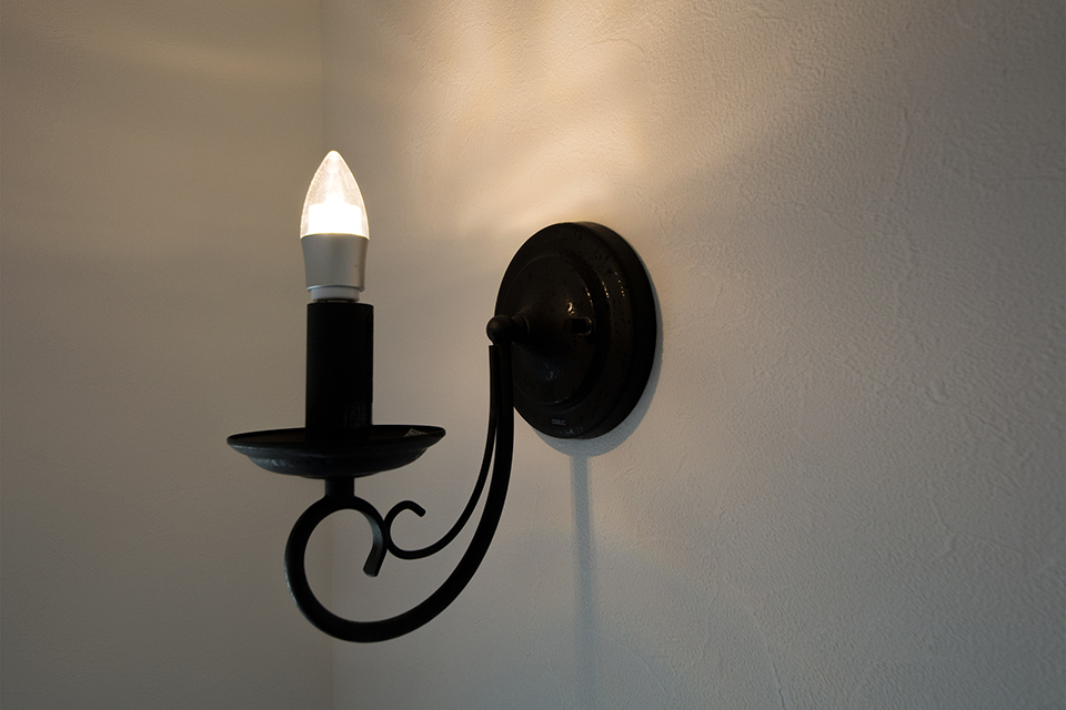 アンティーク調の蝋燭風ウォールランプが空間を彩ります。