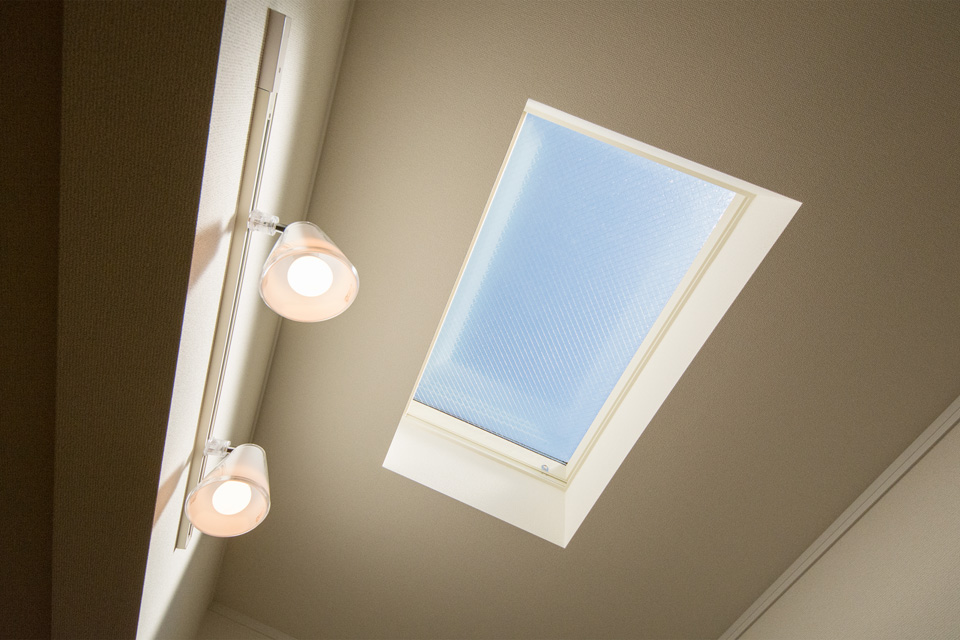 トップライトの下にはレール式の照明がついてお洒落な雰囲気を演出します。
