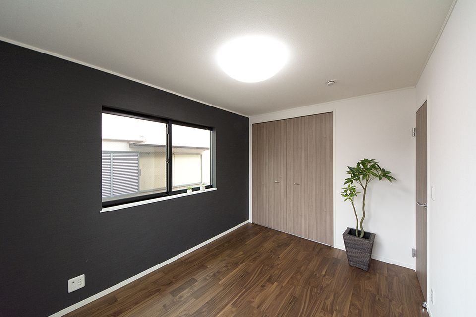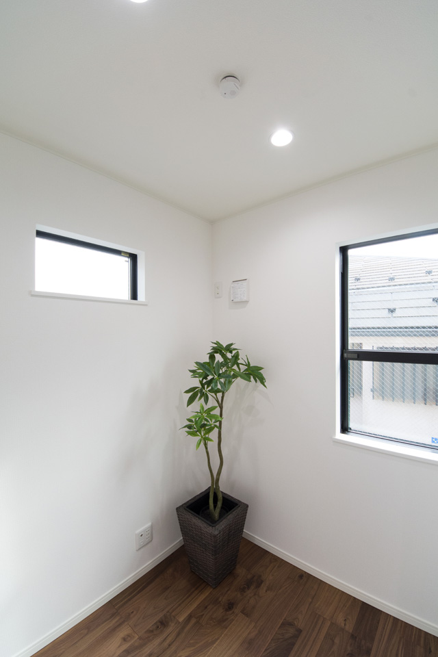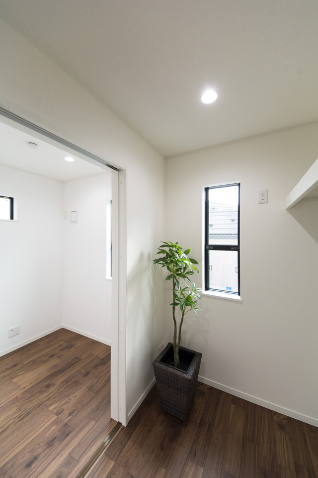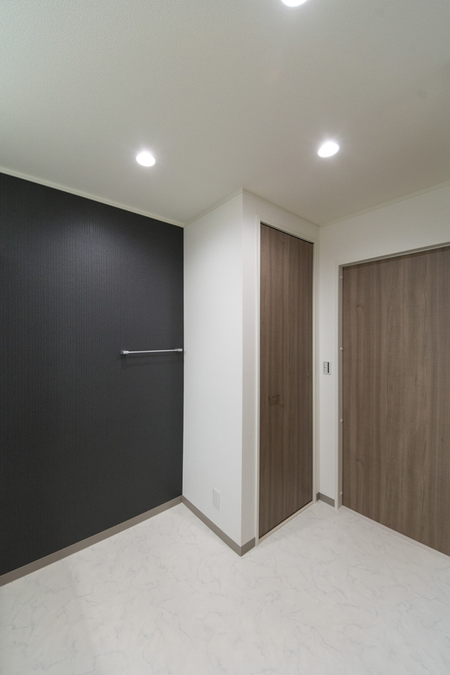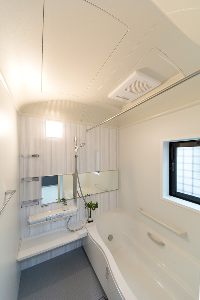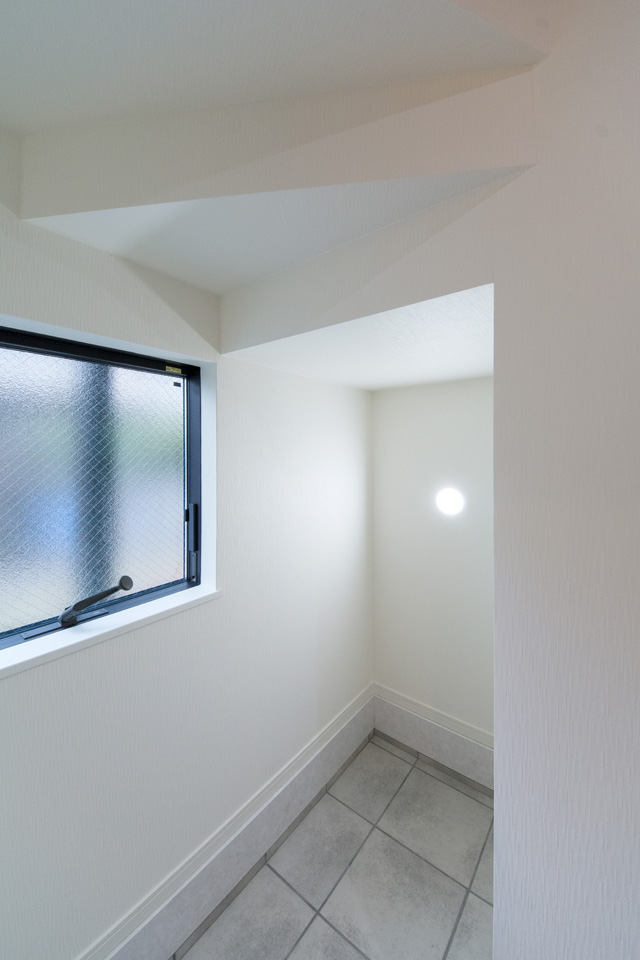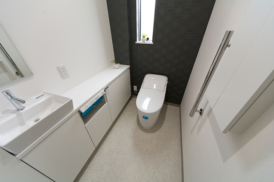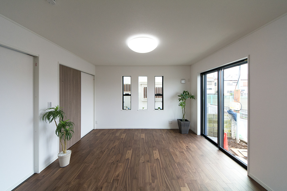 モダンな表情を見せるスリット柄サイディングを、白と黒で張り分けしたスタイリッシュ&モダンなデザイン。 室内も白を基調としたモダンな空間に。