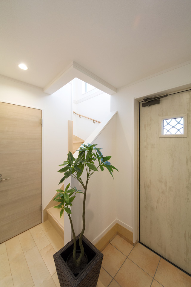 エクリュアイボリーの玄関ドアがナチュラルな空間を演出。