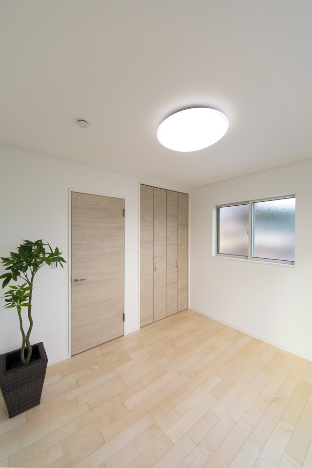 柔らかな配色の建具とフローリングがナチュラルな雰囲気を演出する2階洋室。