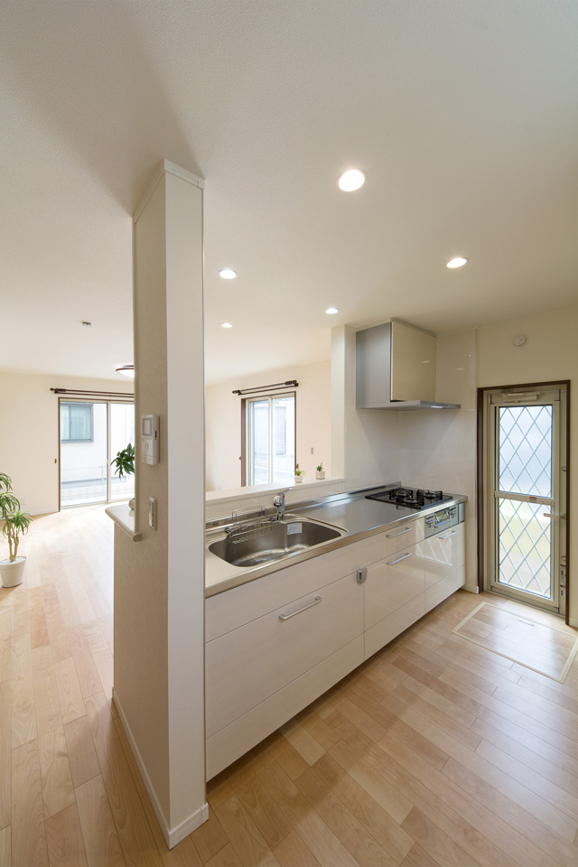 シンプルモダン埼玉県狭山市30坪以上玄関土間、リビングイン階段、ハイスタッド、アイランド/ペニンシュラキッチン