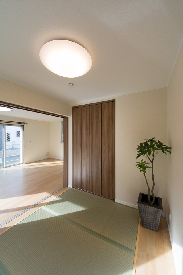 畳のさわやかなグリーンが空間を彩る1階畳敷きスペース。