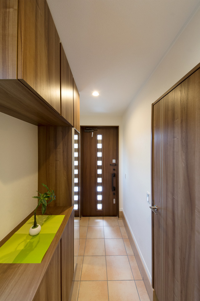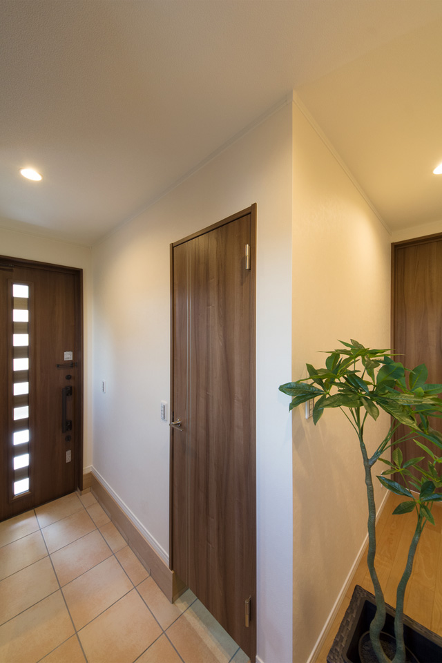 玄関ドアのガラス部分から差し込む光が、明るく開放的ある空間を演出します。