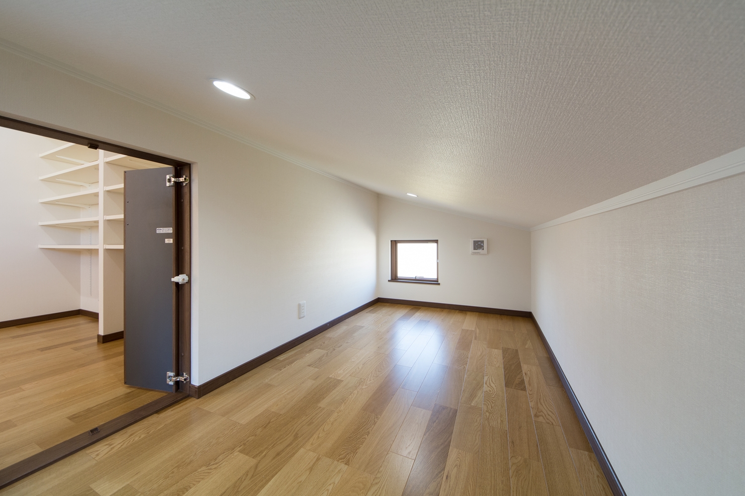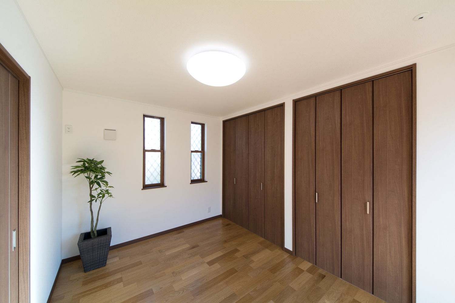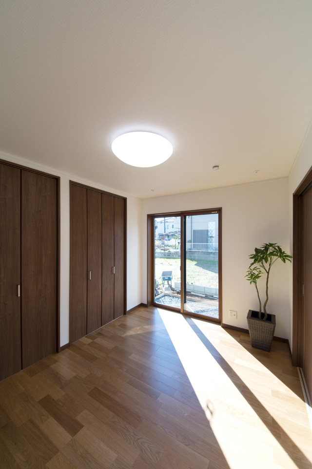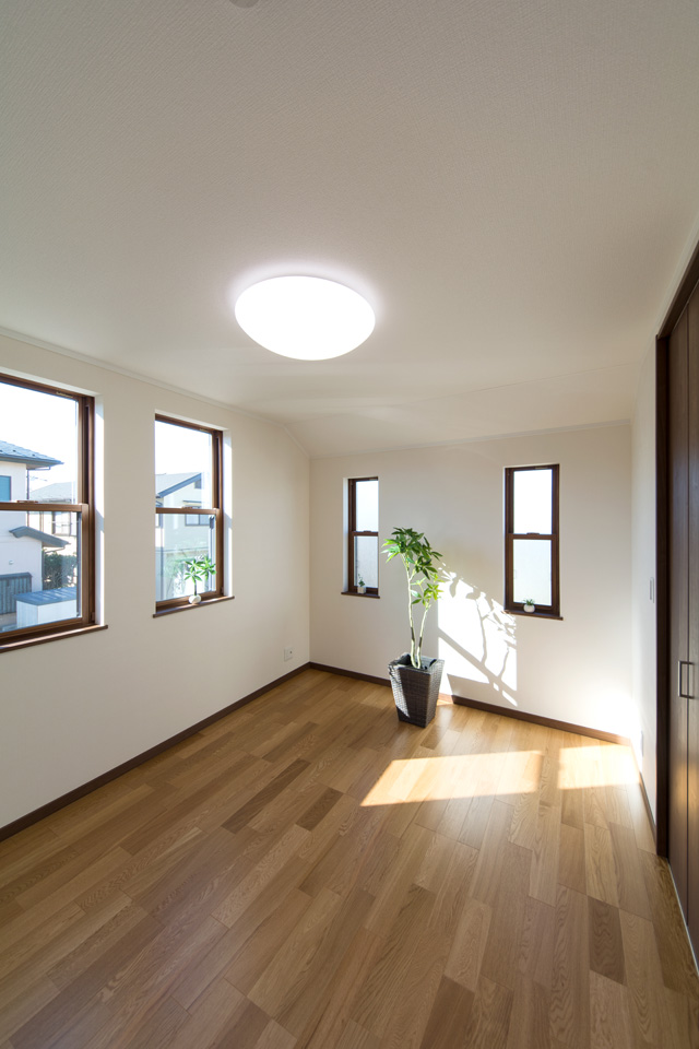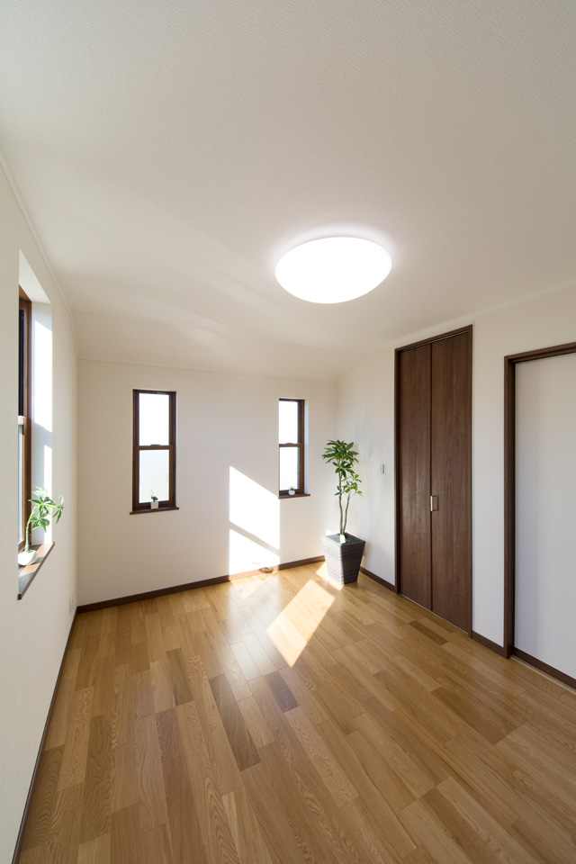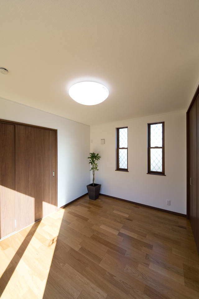 2階洋室―しっかりした木目、特徴的な柾目の斑紋が正統を印象づける「オーク」のフローリングとモカ色の建具がナチュラルな空間を演出。