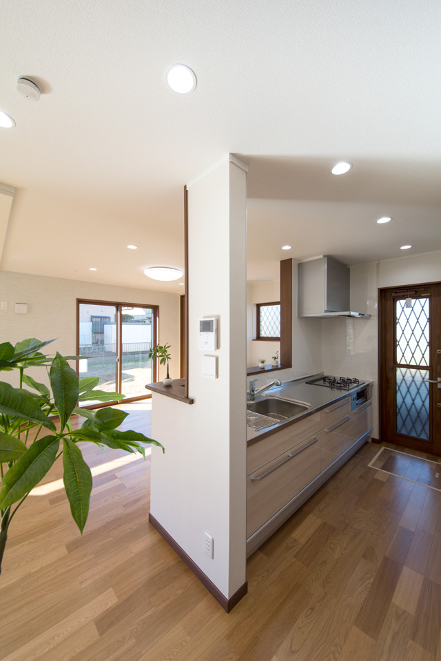 玄関ドアのガラス部分から差し込む光が、明るく開放的ある空間を演出します。ドアを閉めた状態で通風可能な通風機能付。