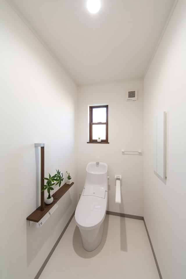 白を基調とした清潔感のあるトイレ。将来の介護を見据えたゆとりある設計。