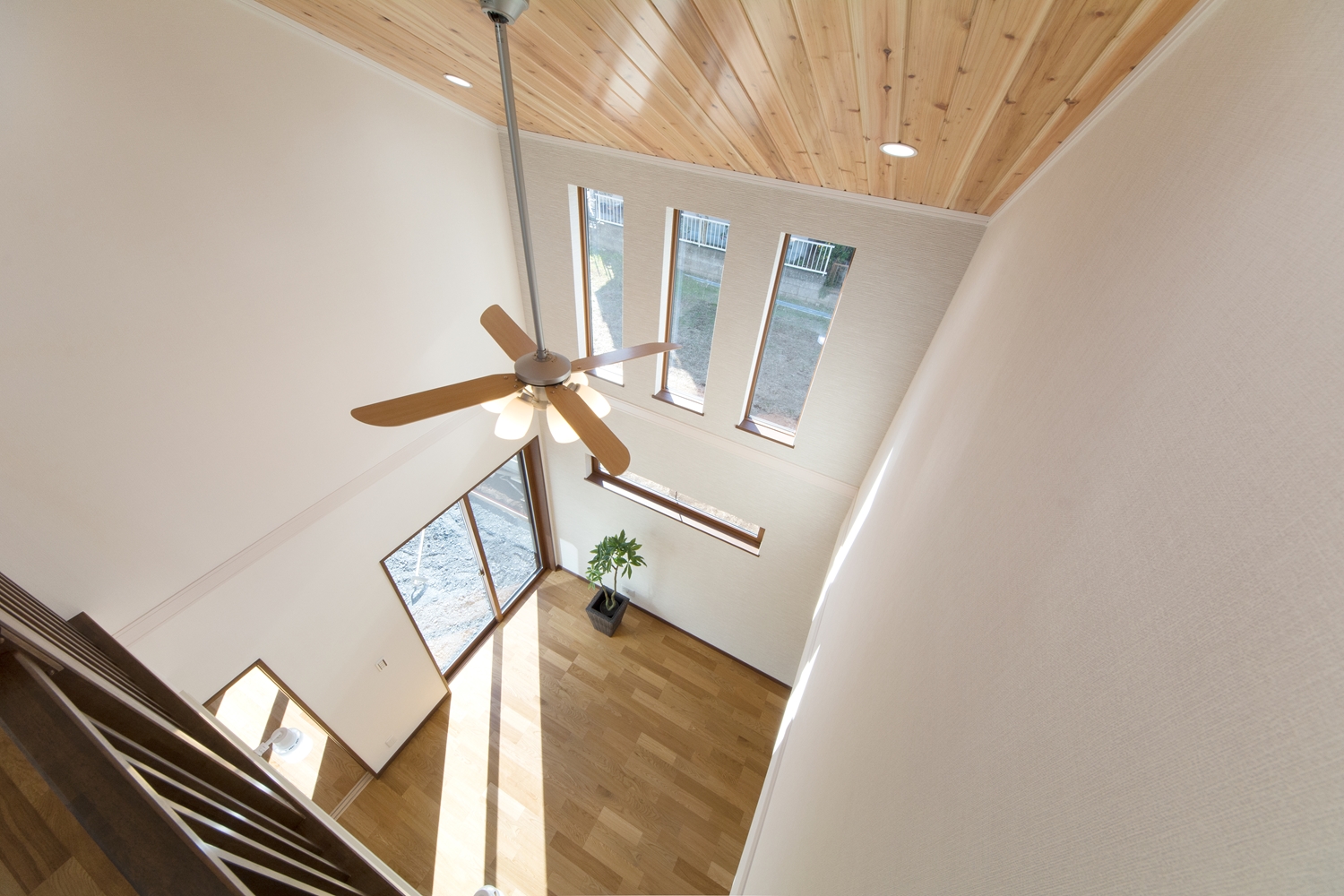 リビングにはインテリアファンを設置。空気の流れで快適な居住空間を可能に。