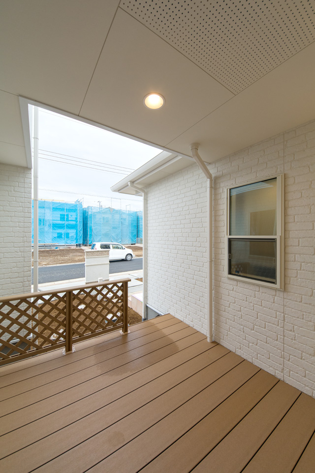 ペットと遊べるウッドデッキ。陽射しが入り、心地良い空間