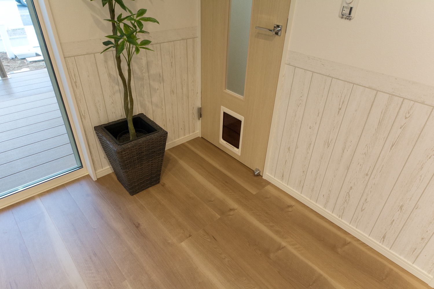 ペットにやさしいフローリング。すべりにくくペットの歩行も快適。爪による傷もつきにくくお手入れ簡単。