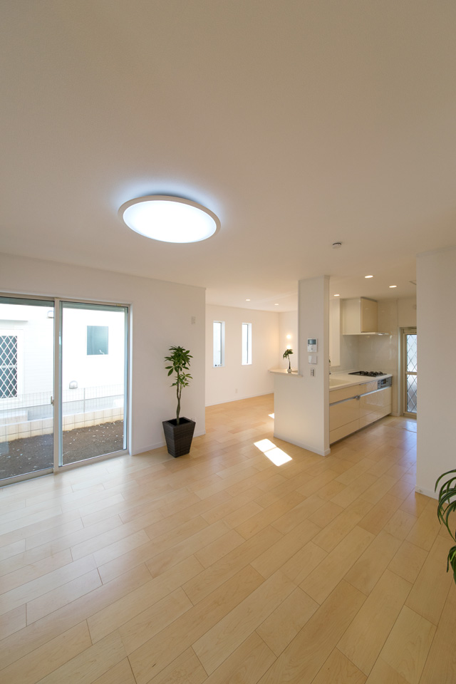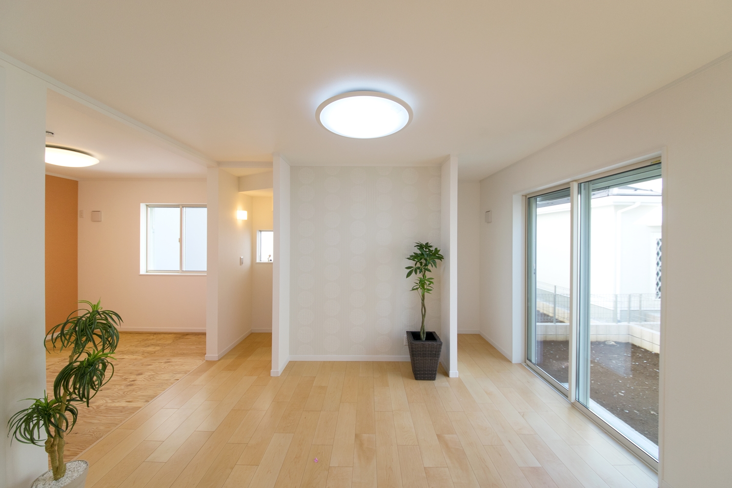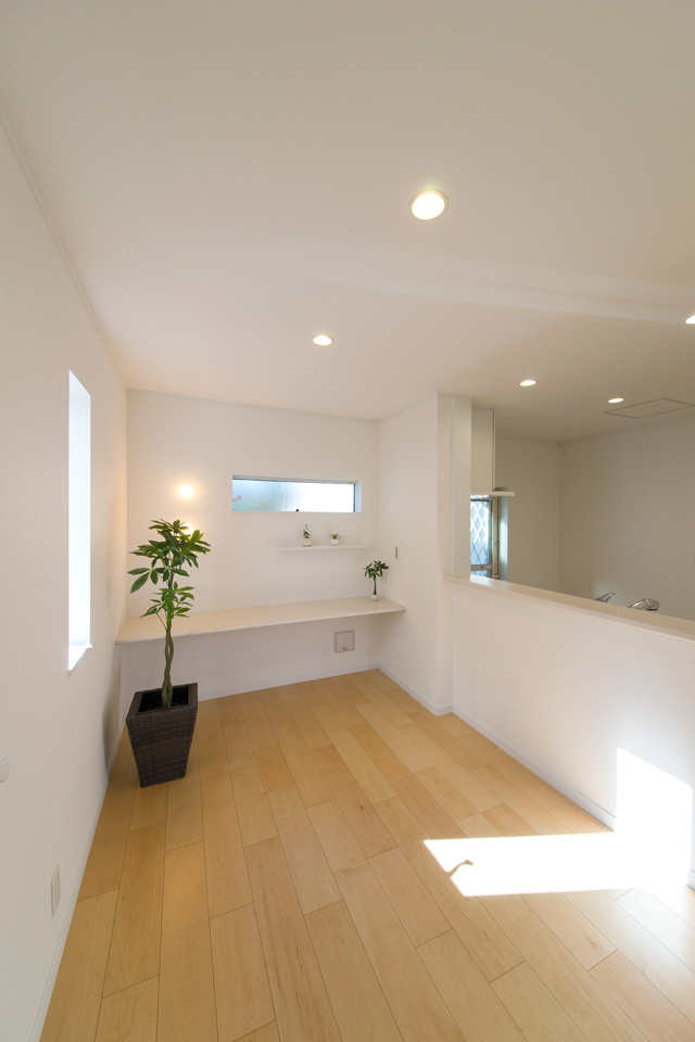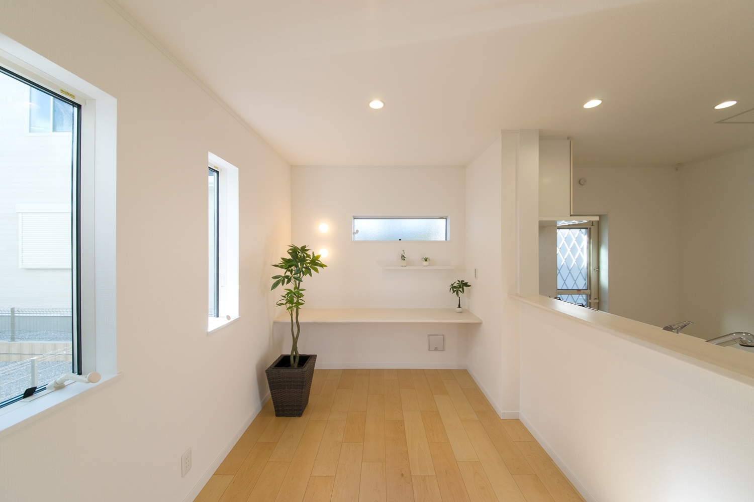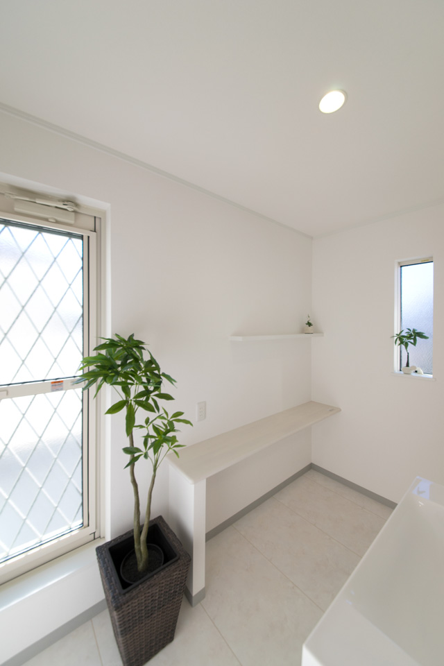 お風呂や洗面室は実はかなりのプライベート空間です。洗濯機が洗面室にあれば、汚れた衣類が置きっぱなしになっていたり。。。あまり来客には見てほしくない部分を全て2Fへ持っていくことで、1Fが生活感の無いスッキリとした広い空間となり、プライベートな空間としっかり分けられます。